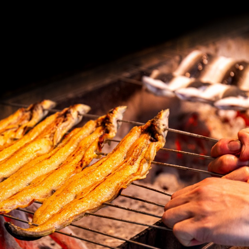 関西風うなぎを提供する当店では、うなぎの捌きが身具合を決めます。強火で焼いてもふっくら仕上がるよう、『鰻師』と呼ばれる専門の職人が一つ一つ丁寧に腹開きしております。そのうなぎを備長炭で有頭のまま一気に焼き上げることで、皮はパリッと、身はサクッとした独特の食感に仕上がり、うなぎ本来の旨味を食感と共にお楽しみいただけます◎