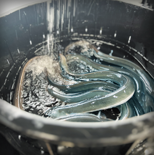 専用の桶で1・2日程水にさらすことで無駄な脂や泥抜きをし、うなぎ本来の魅力を最大限まで引き出します!